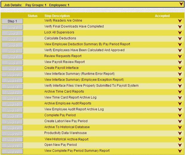 When the Close Pay Period option is selected and the set up screen is completed, the following screen is displayed.