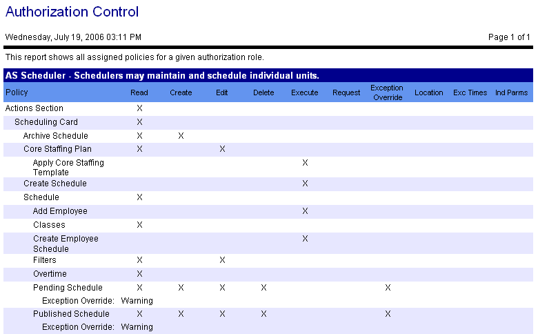 To view other policies granted to a user through a specific role, run the Authorization Control report for that same role. If this policy meets the needs of the user, it can be assigned to the user.