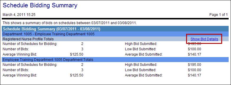 Click the link, Show Bid Details, to view details of the Schedule Incentive requests.